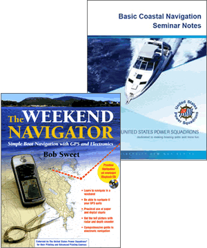 The student kit contains The Weekend Navigator textbook, a Seminar Notes booklet, and Maptech's Chart Navigator Training CD, which includes software and digital charts to gain familiarity with this new technology.